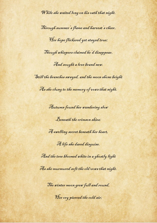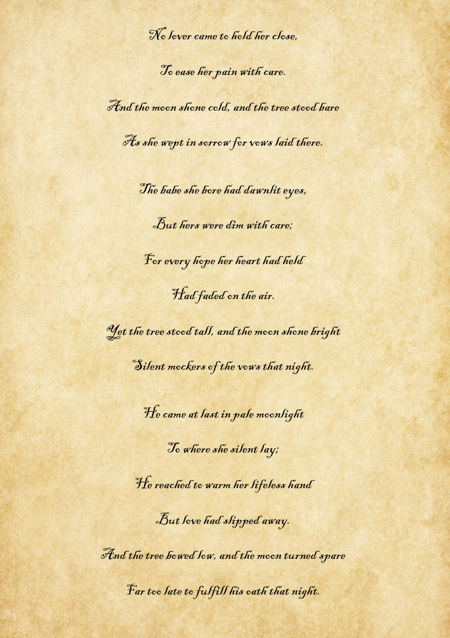 I received a copy of a beautiful ballad inspired by the song "The tree, the moon and the lover's promise" Aimee sings in "Her Bridegroom Bought and Paid For" and had to share it with you all.